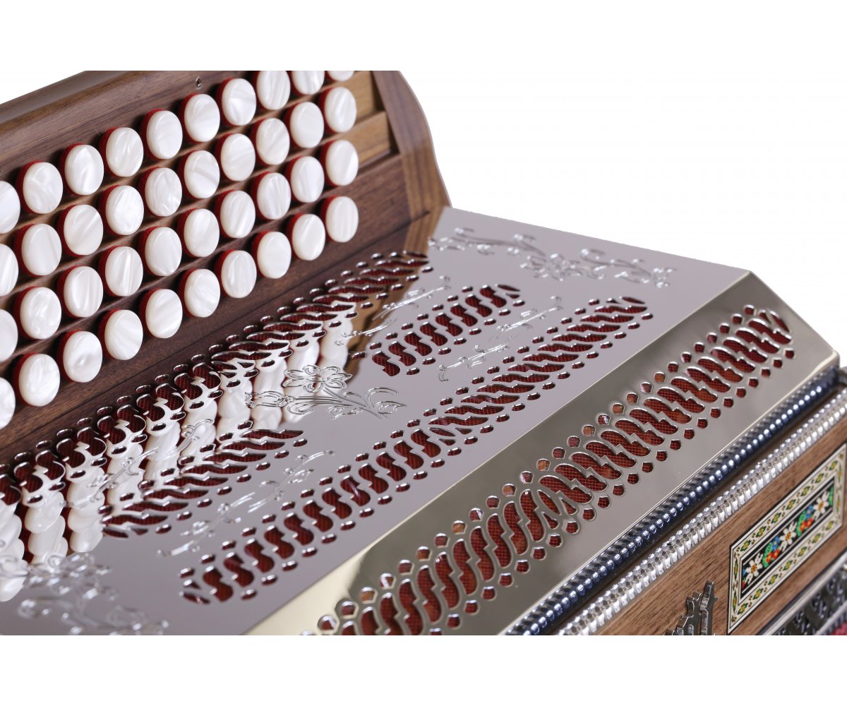 Unser Modell SPEZIAL ist DIE traditionelle steirische Harmonika. Ausgeführt mit Intarsien oder handbemalt mit bäuerlichen Motiven hat sie durch die Stimmzungen „Tipo a mano“ einen geringen Luftverbrauch, die Töne sprechen sofort an. Das Ergebnis: eine wunderbare Klangfülle.