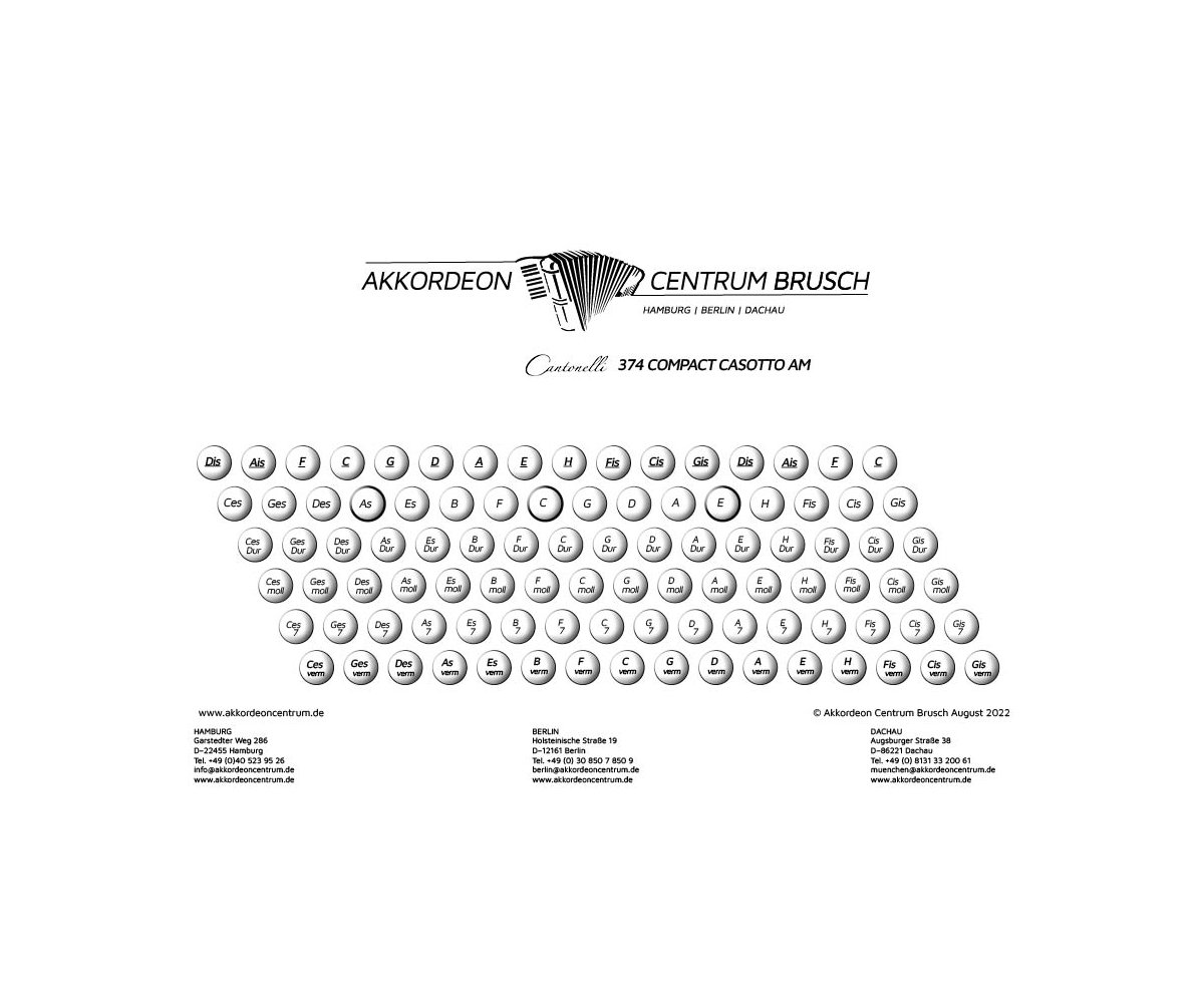 Wenn du ein neues 4-chöriges Cassotto-Akkordeon von höchster Qualität mit geringen Abmessungen suchst, dann hast du es mit der Cantonelli 374 Compact Cassotto gefunden!