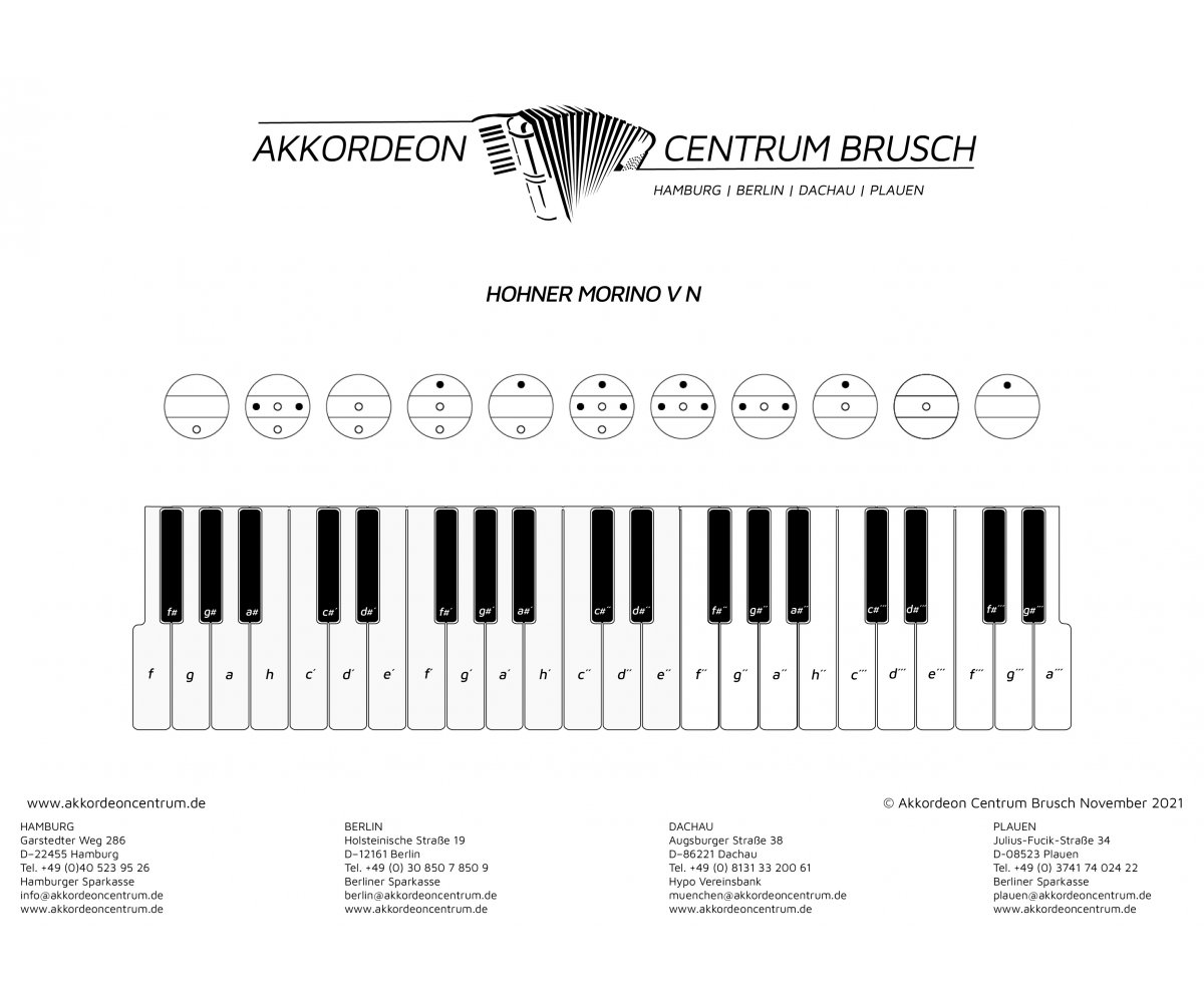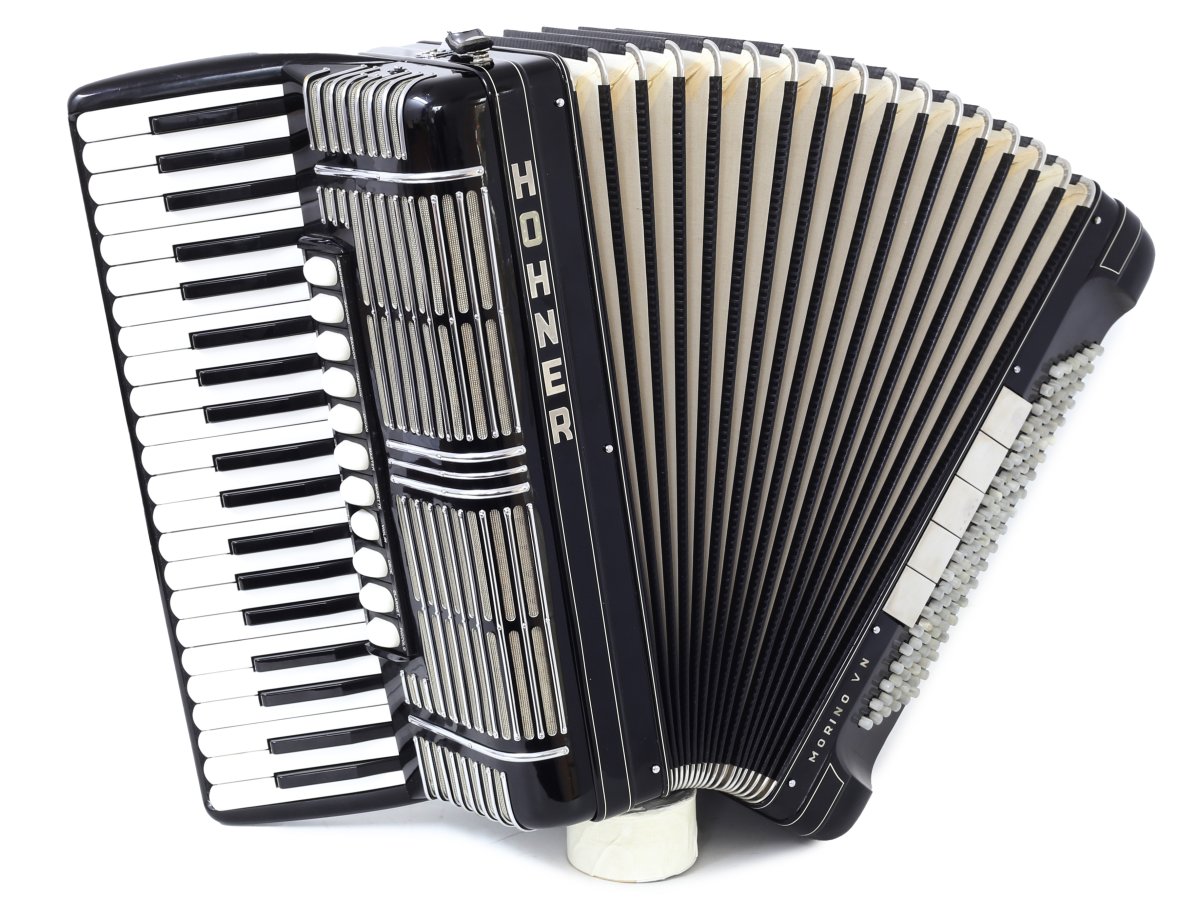 Sehr schön gepflegte HOHNER Morino V N. Die Tastatur hat neue Klappen und ist neu geführt. Die Stimmtechnik ist generalüberholt und es wurde ein Echt-Leder-Handriemen verbaut.