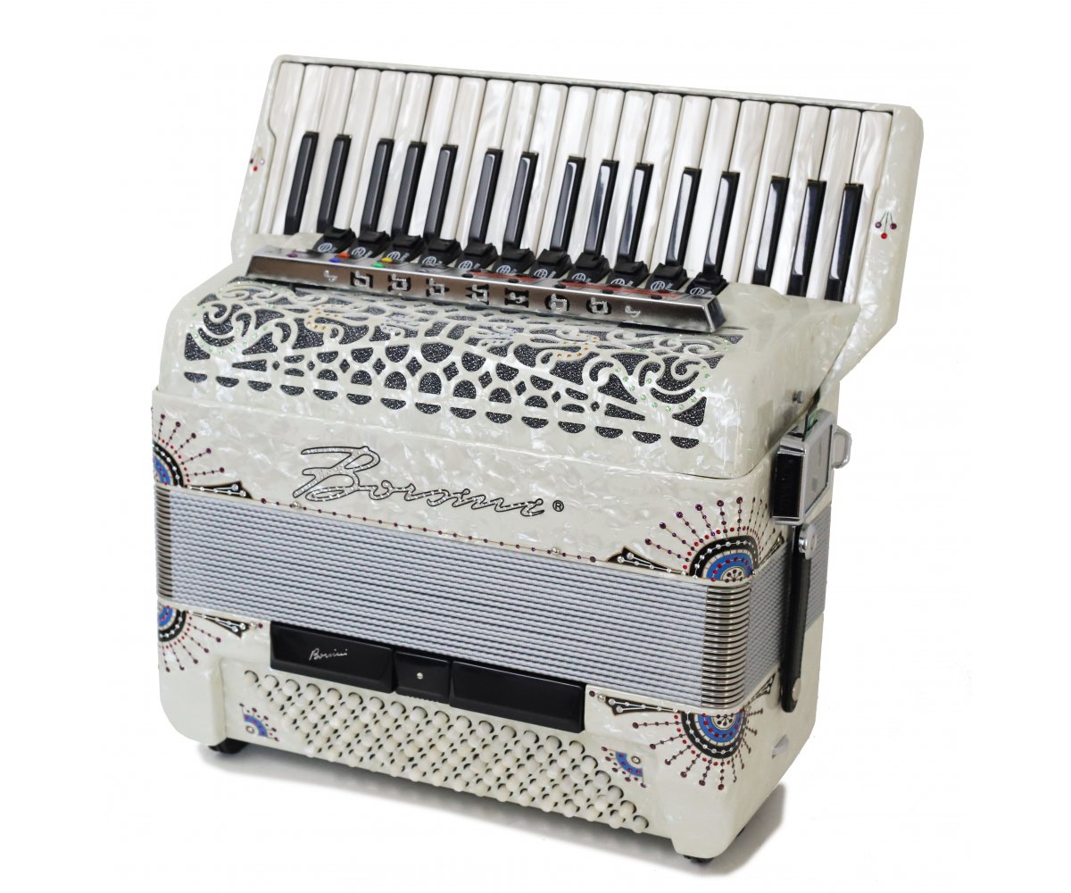 Borsini K9-4 supercompact ! Hier in der Supercompact-Ausführung - eines der beliebtesten Cassotto - Akkordeons von Borsini, mit 37 ! Tasten im 72-Bass-Gehäuse ! Das macht das Instrument in dieser Klasse einzigartig...