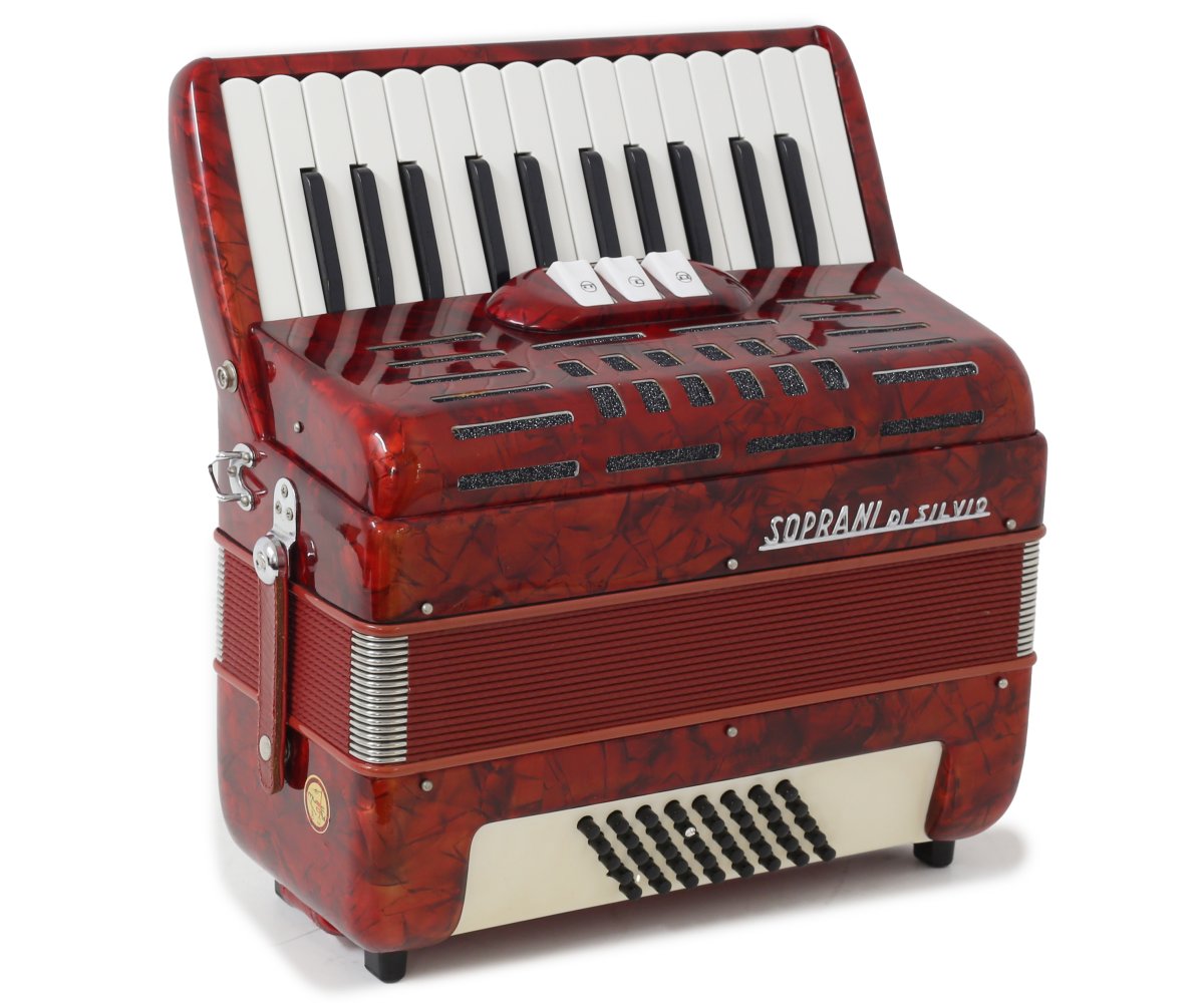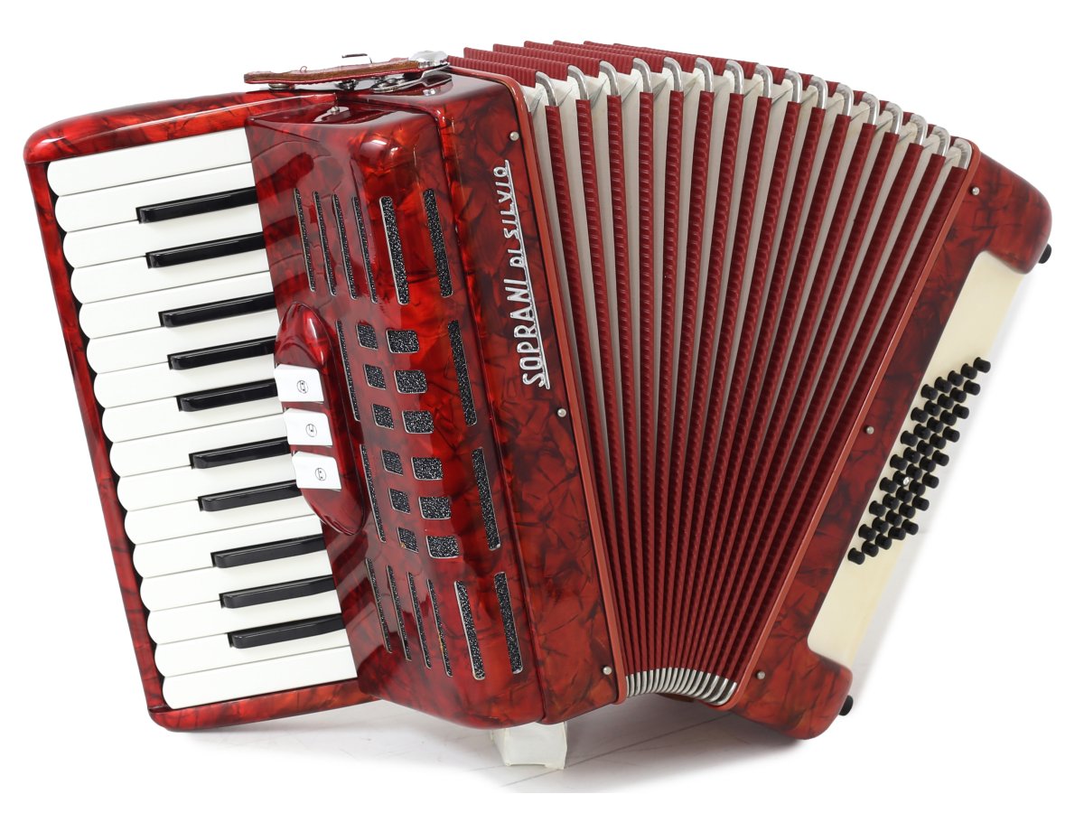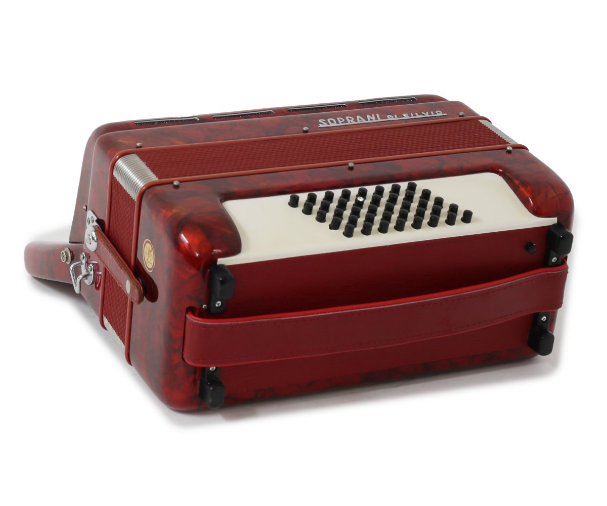 Ein kleines kräftiges Akkordeon aus der SOPRANI Familie. Stimmtechnisch generalüberholt in gutem Zustand mit nur 5,7 kg inklusive Koffer und Riemen!
